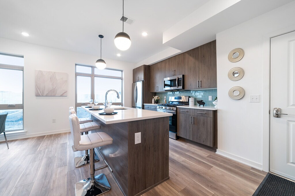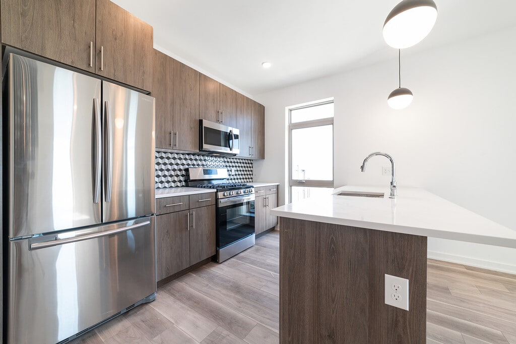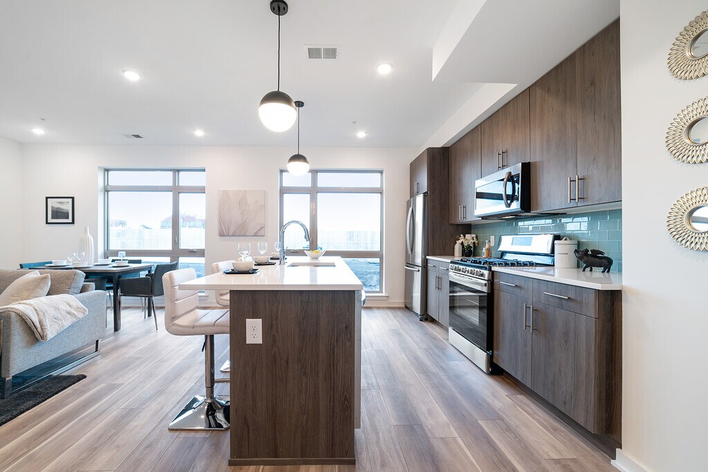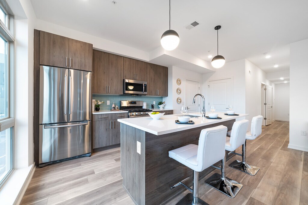 Introducing KC Flats! These new construction Apartment Homes are located within the Brand New Kensington Courts development in the hottest neighborhood in Philadelphia, Fishtown! These spacious units come with massive windows for tons of natural light! Each unit features modern designed kitchens with islands for plenty of seating, Quartz countertops, and stainless-steel appliances! Each bathroom features contemporary vanities and fully tiled bathtubs. Lastly, each home comes with a washer and dryer in the unit! If all of that wasn't enough, all residents will have access to a community Roof Deck with amazing city views and the use of our dog run and community room, which features games, a lounge area, fitness room, and chef's kitchen, which can be reserved for events! $25 per month for High Speed Internet Access! Off-Street Parking is $100/mo, currently available.
