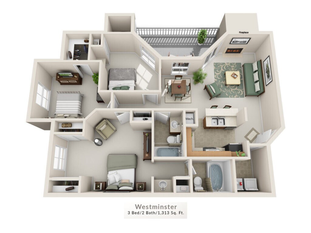 1 Bedroom to 3 Bedroom Apartments at Kensington Park currently range from $1,114 to $1,199