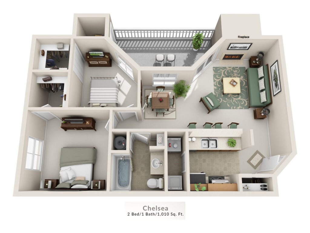 2 Beds, 1 Bath, 1010 sq ftModel Gallery