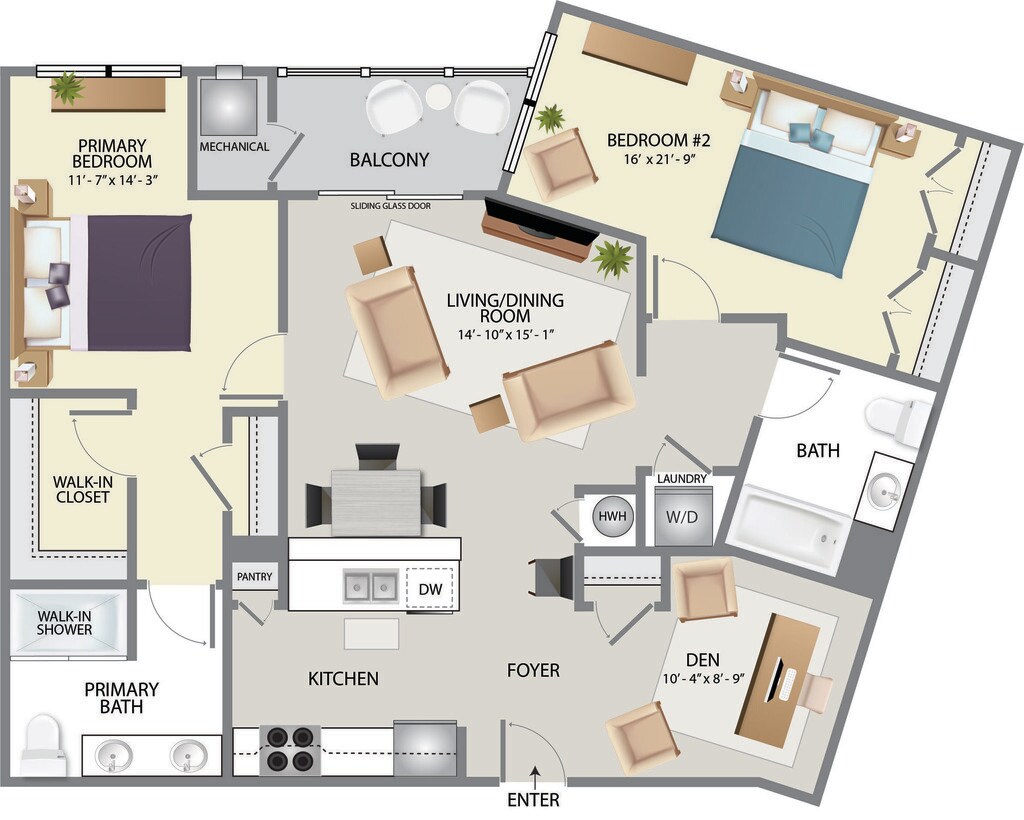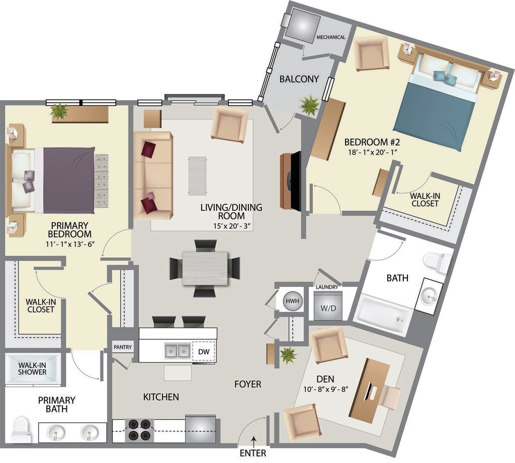 Apartment Model: 1EFrom $2,2751 Bedroom, 1 Bath, 851 sq ftAvailable Now![]()