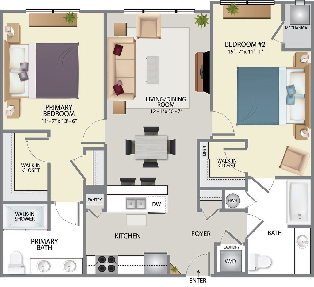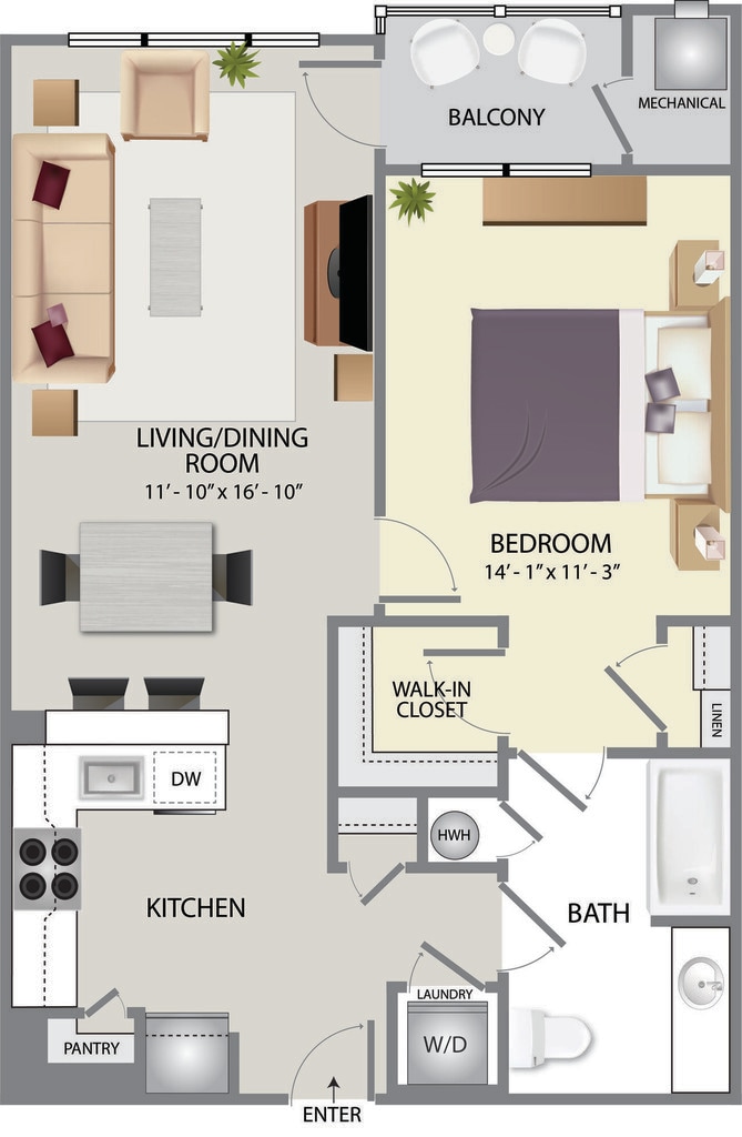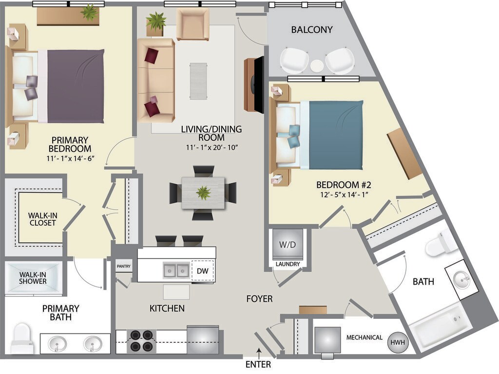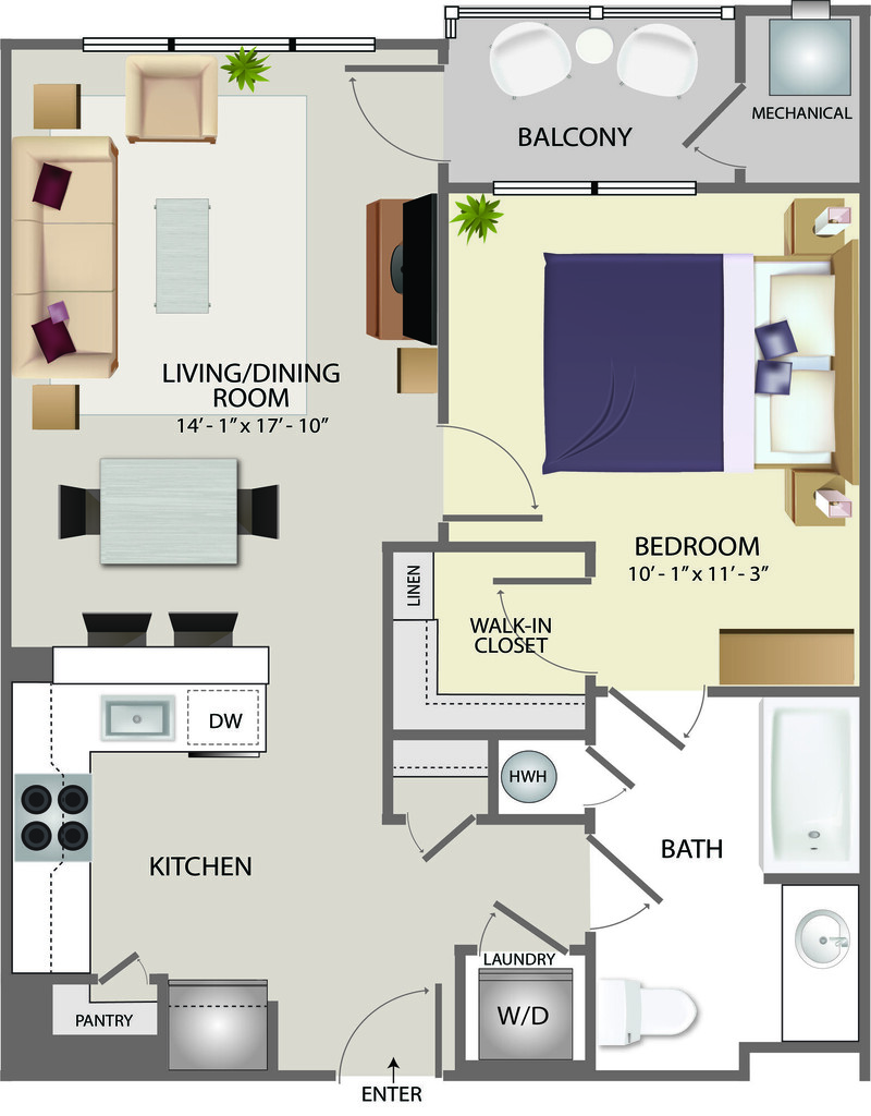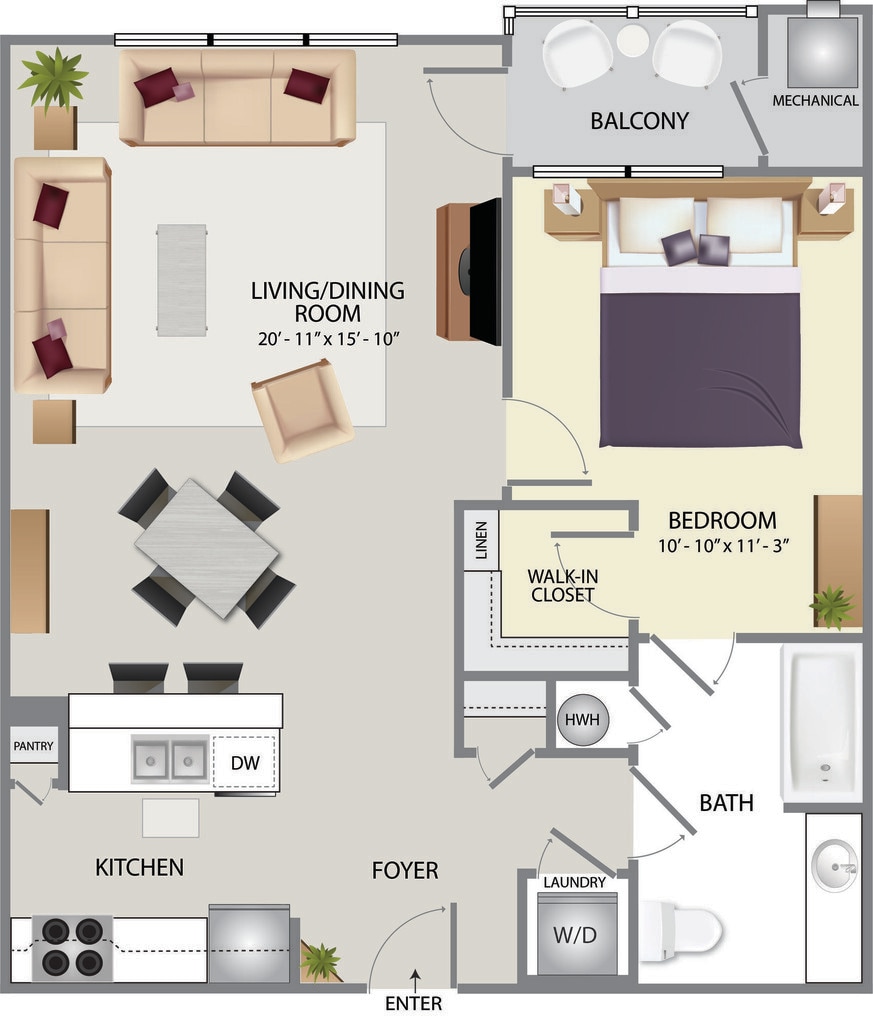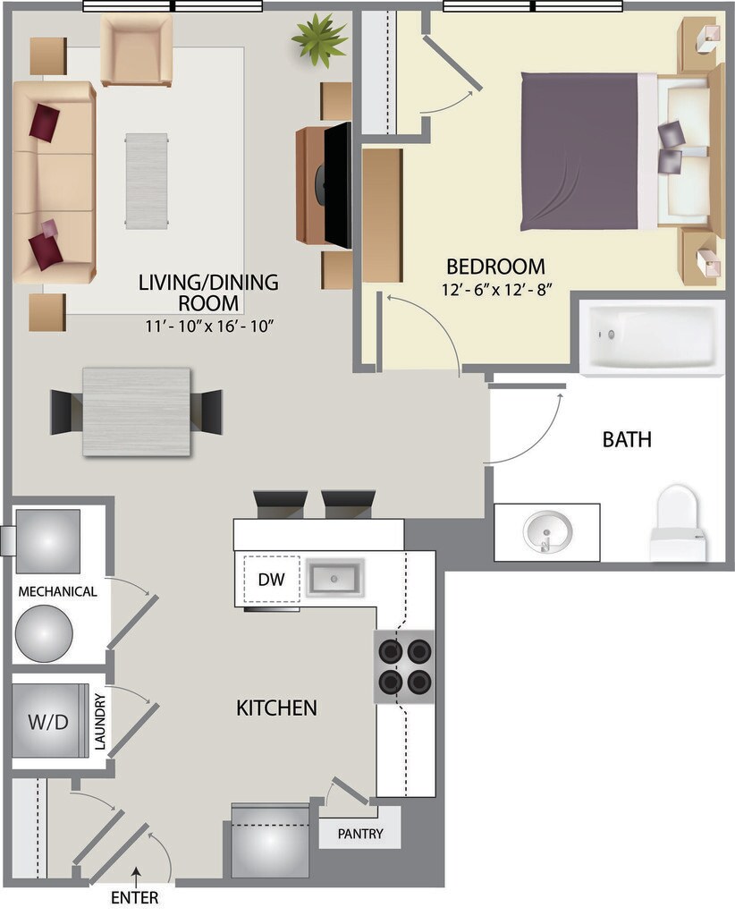1 Bed, 1 Bath, 703 sq ftAvailable NowCheapest 1 BedroomThis is the cheapest 1 Bedroom at this PropertyModel Gallery