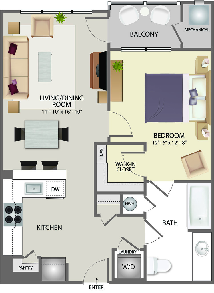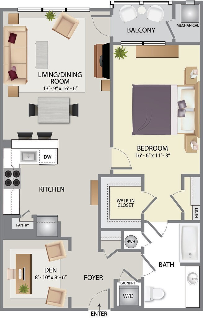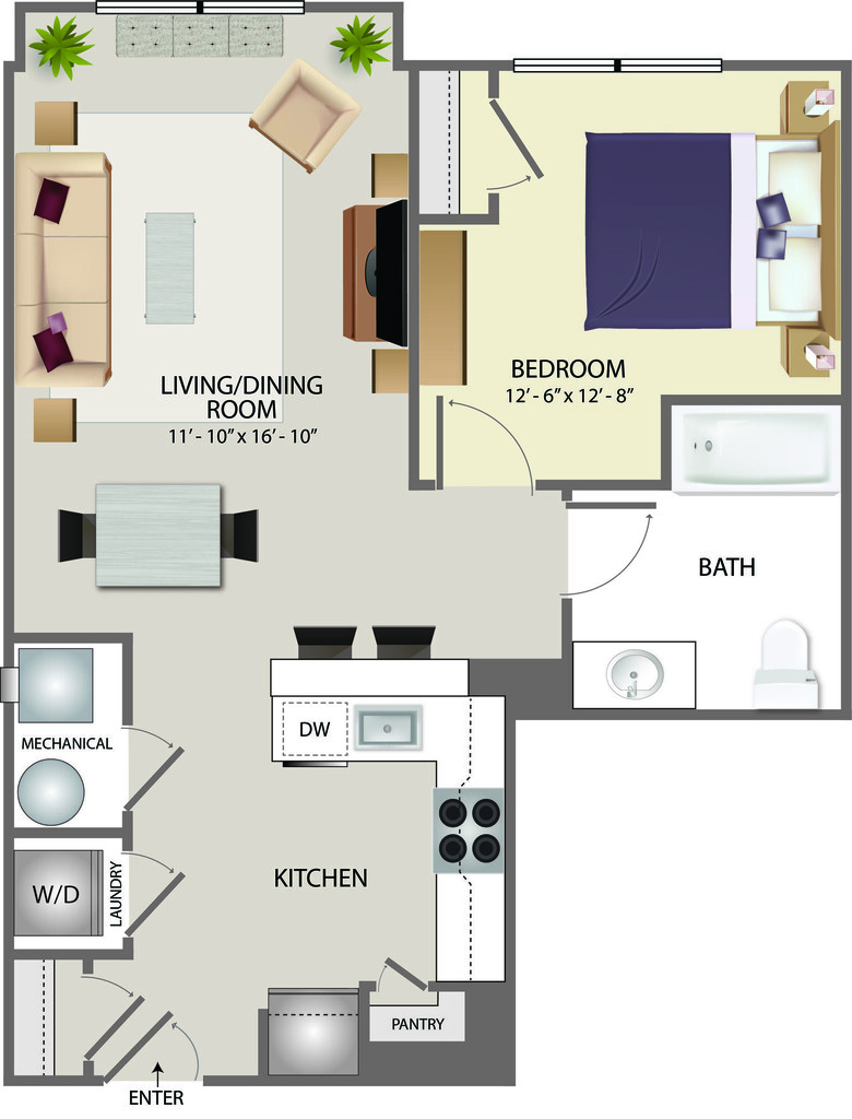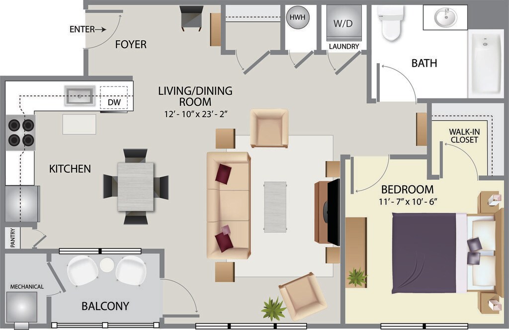 1 Bed, 1 Bath, 755 sq ftAvailable NowModel Gallery