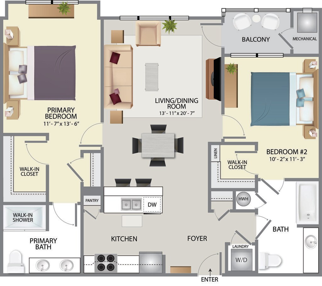 1 Bed, 1 Bath, 756 sq ftAvailable NowModel Gallery