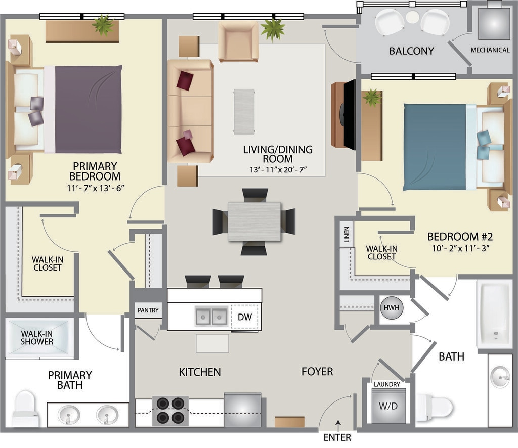 1 Bed, 1 Bath, 851 sq ftAvailable NowModel Gallery