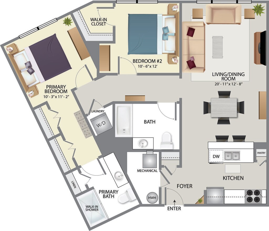 Apartment Model: 1B-XFrom $2,2241 Bedroom, 1 Bath, 756 sq ftAvailable Now![]()