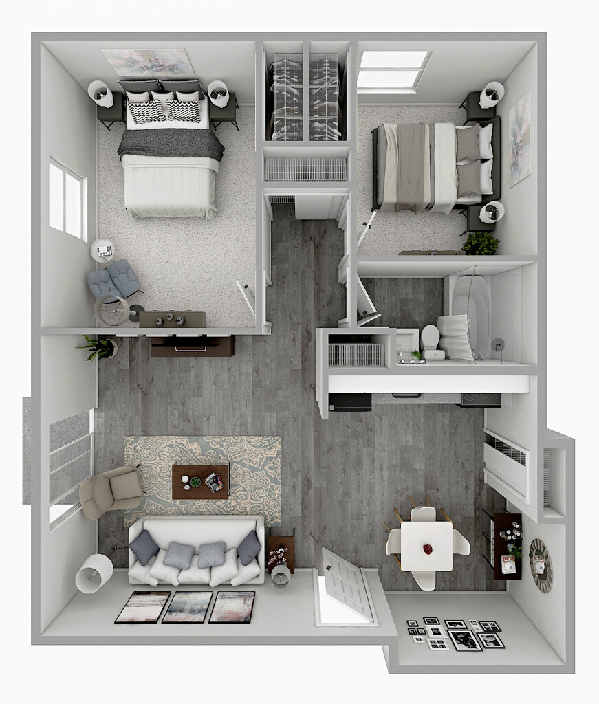 2 Beds, 1 Bath, 750 sq ftAvailable NowModel Gallery