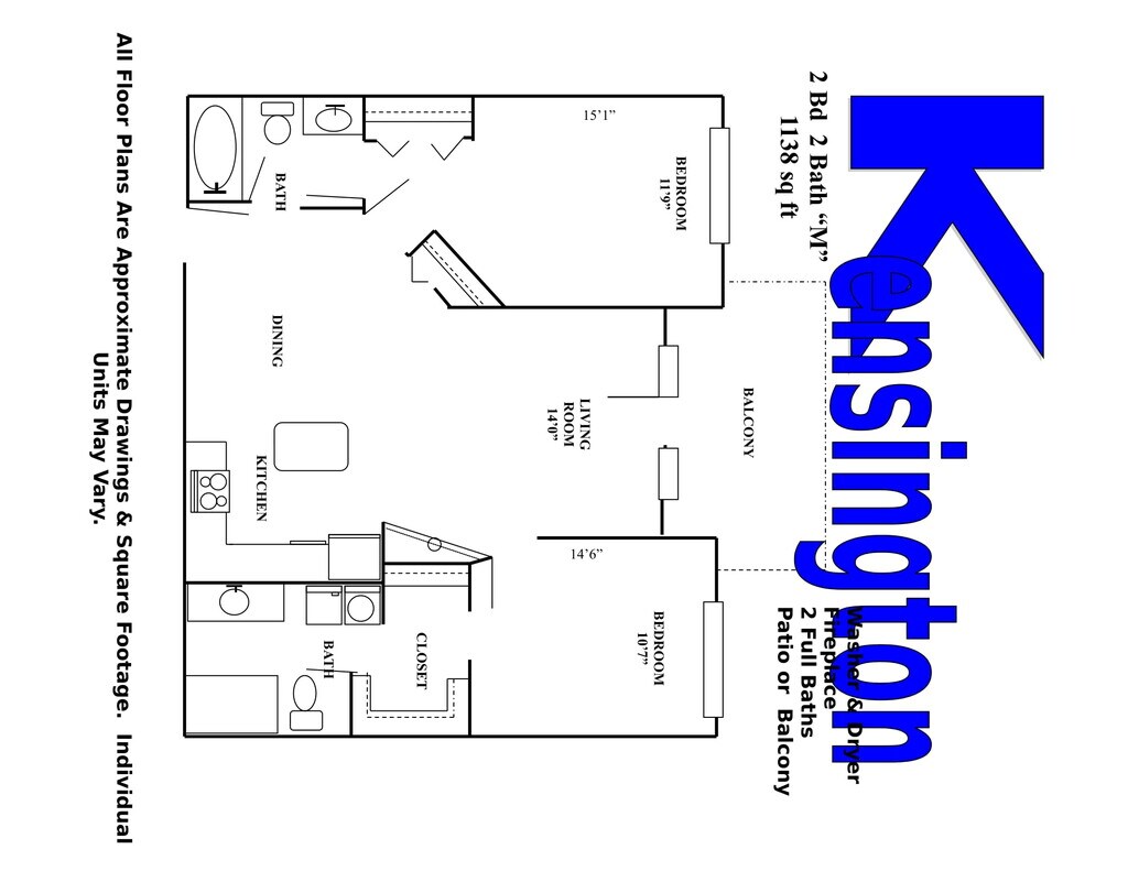 1 Bedroom to 2 Bedroom Apartments at Kensington currently range from $1,075 to $1,750