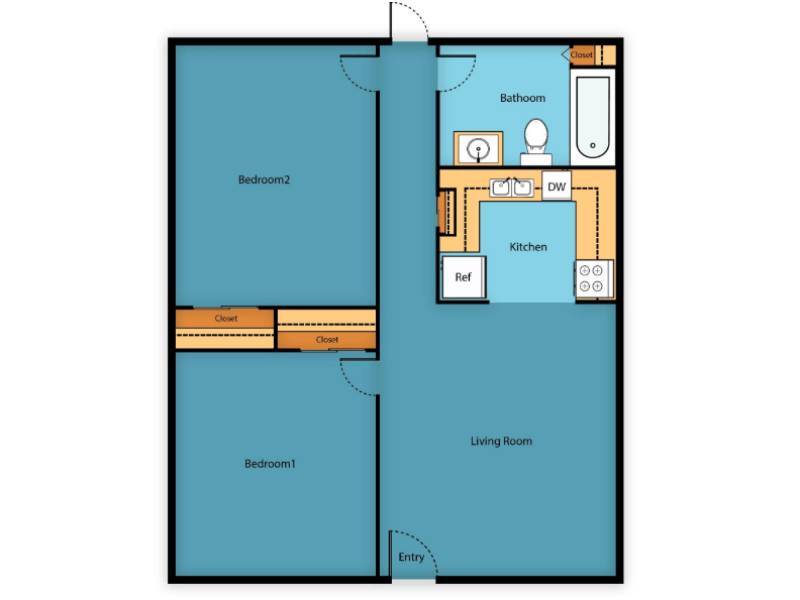2 Beds, 1 Bath, 722-724 sq ftAvailable NowLargest 2 BedroomThis is the largest 2 Bedroom at this PropertyModel Gallery