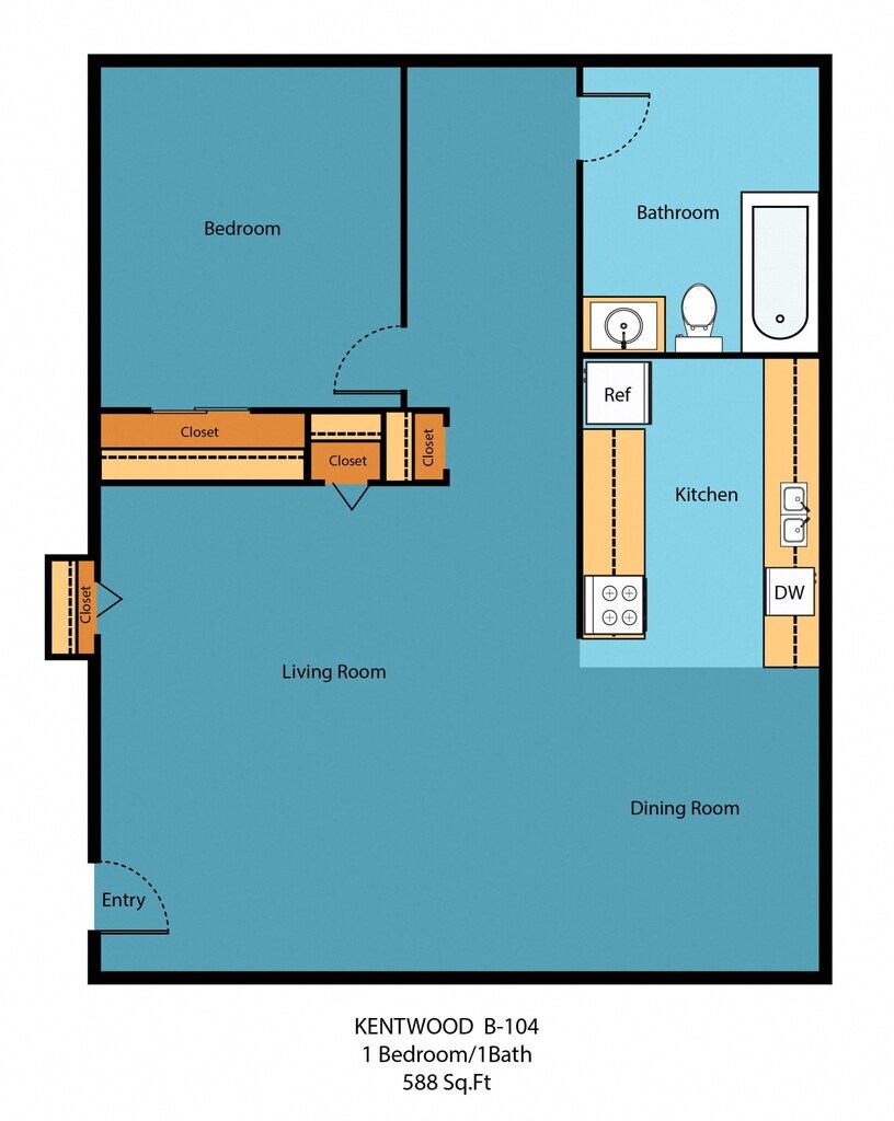 1x1B - Floorplan 1 Apartment Unit: B-104Apartment Model: 1x1B1 Bedroom, 1 Bath, 722 sq ftAvailable NowStudio