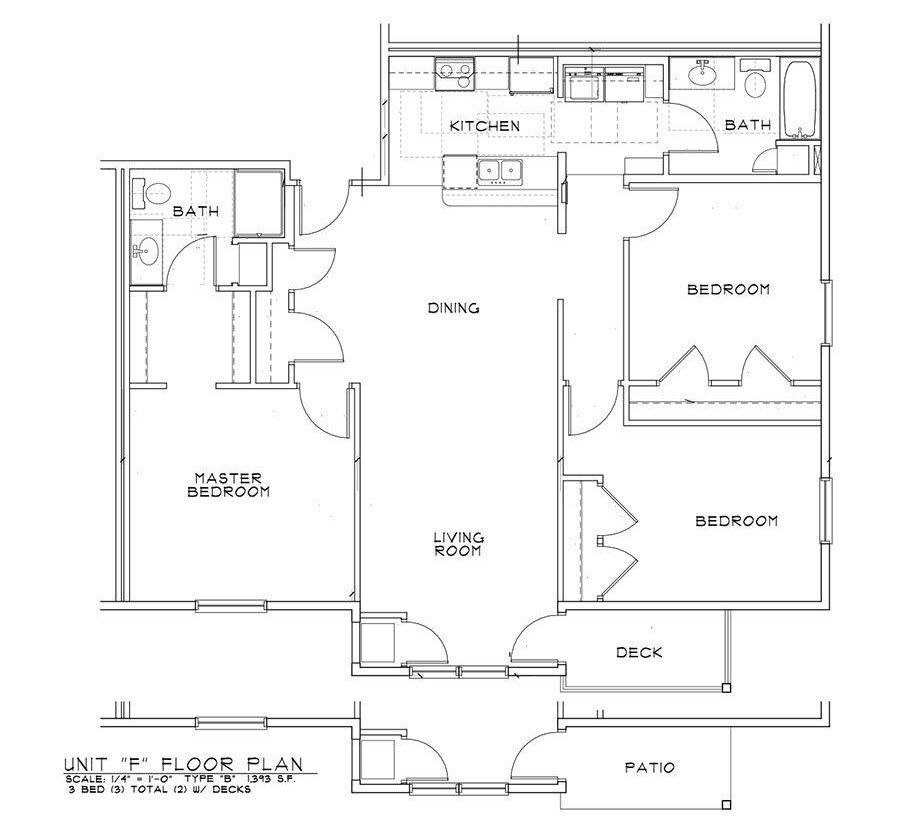 3 Bed 2 Bath | 1338sf - Floorplan 1 3 Bed 2 Bath | 1342sf