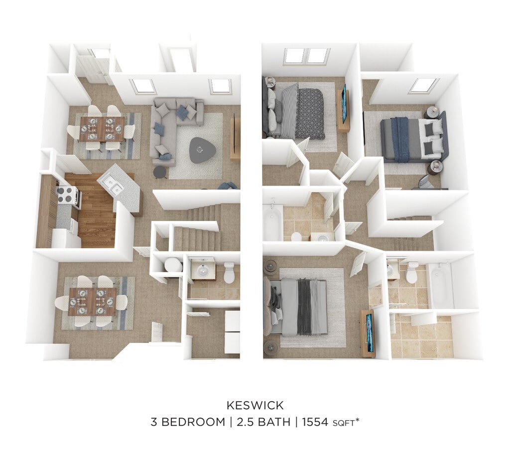 3 Beds, 3 Baths, 1355 sq ftAvailable NowModel Gallery