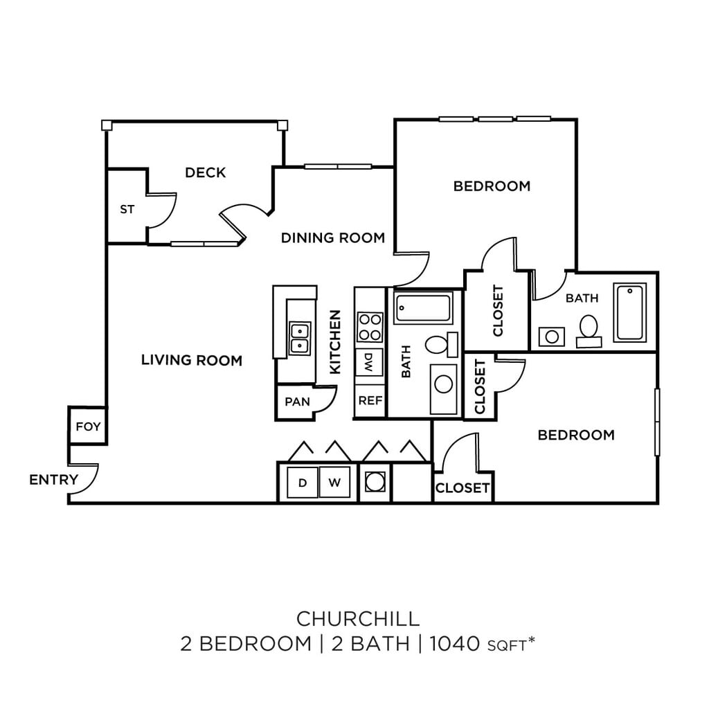 Apartment Model: Two Bedroom 2 Bath-1040 sqftFrom $1,2452 Bedroom, 2 Bath, 1040 sq ftAvailable Now![]()