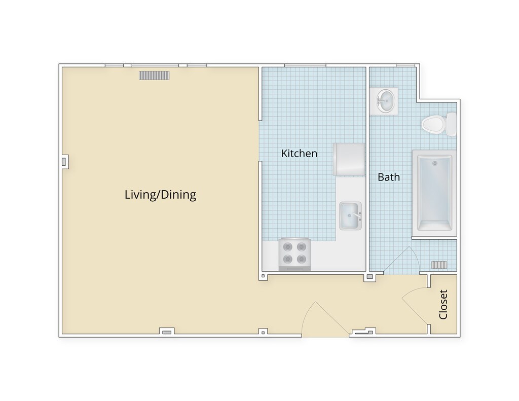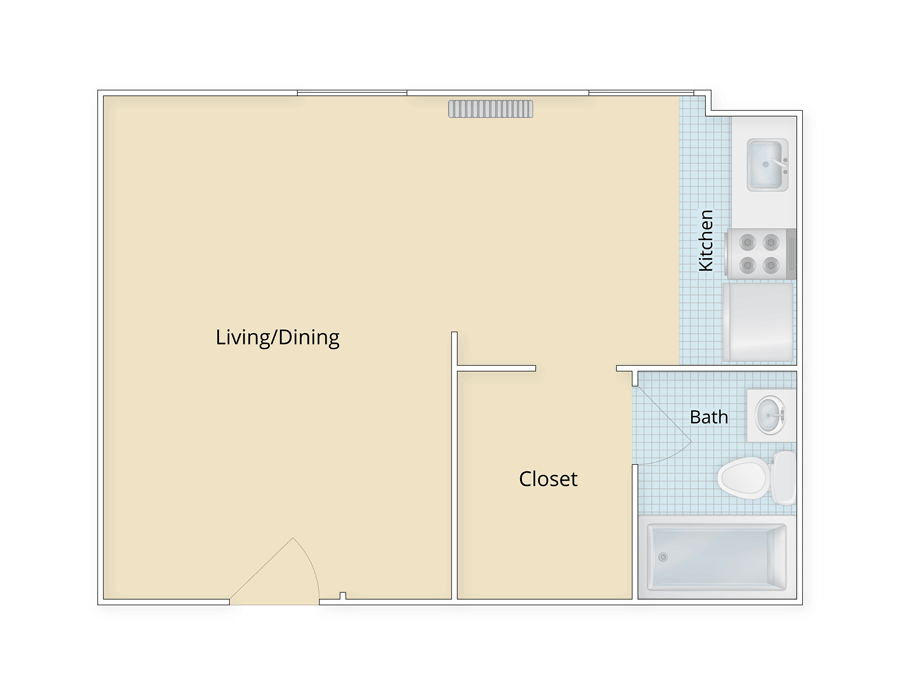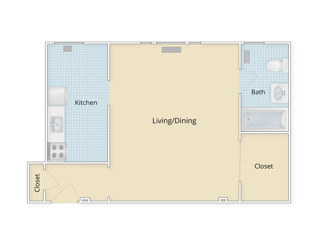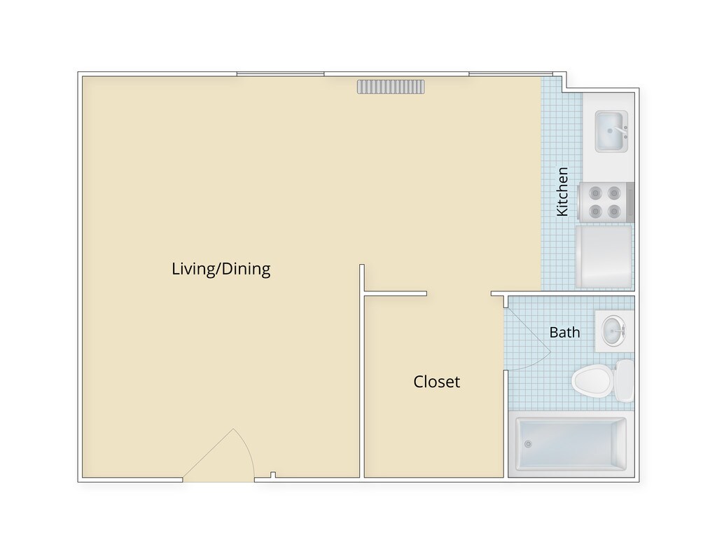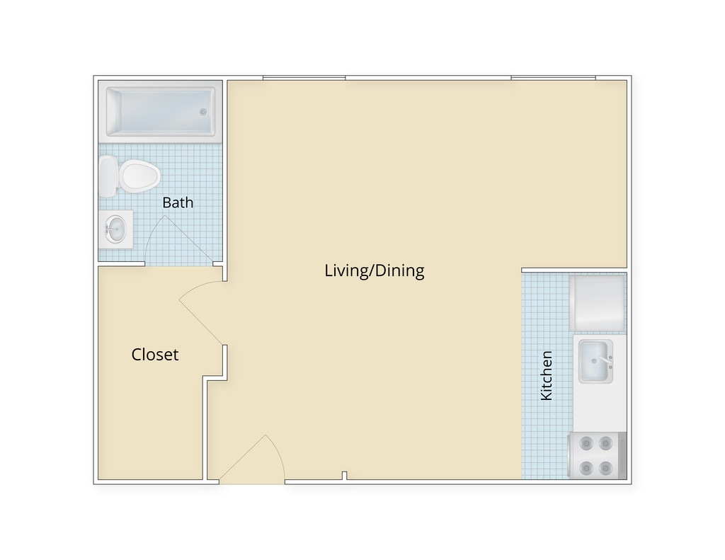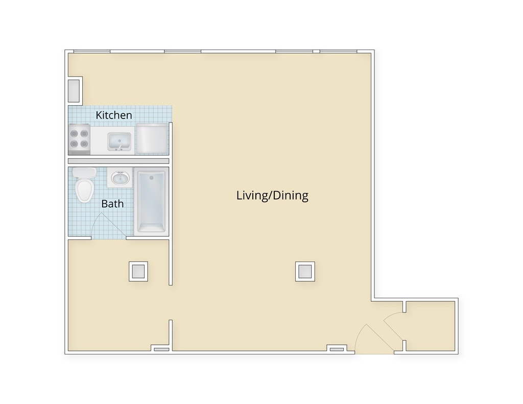 Large Studio - Floorplan 10 Apartment Unit: 104Apartment Model: Large Studio$1,972Studio, 1 Bath, 403 sq ftAvailable Now![]()