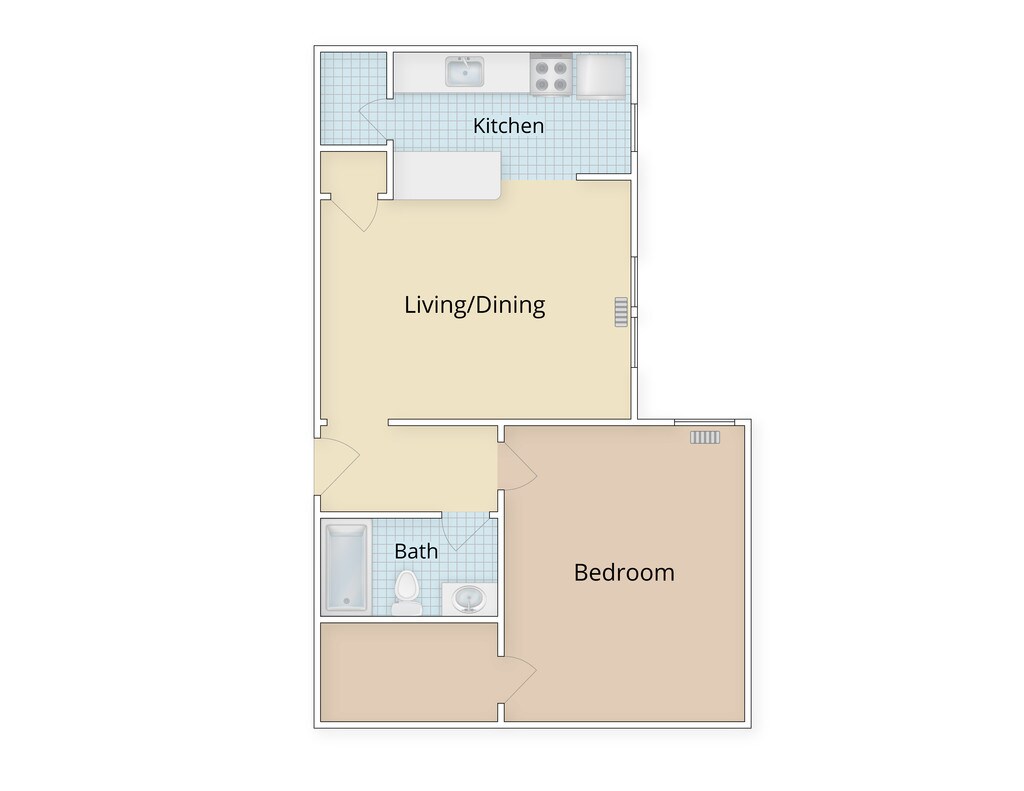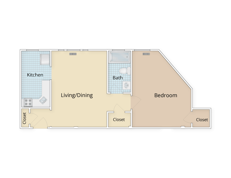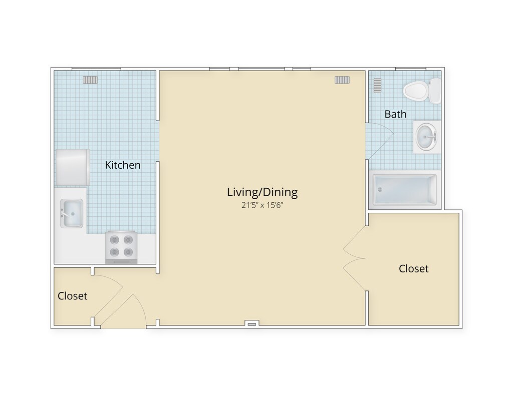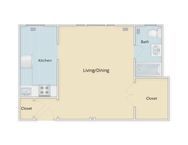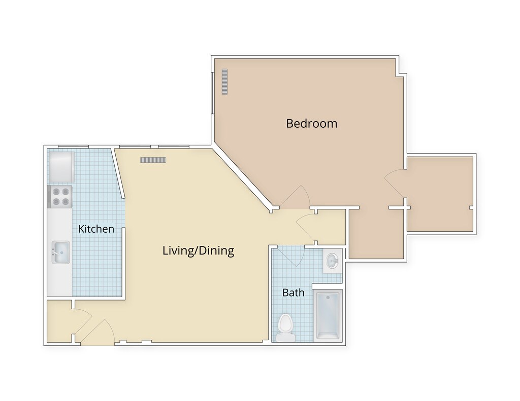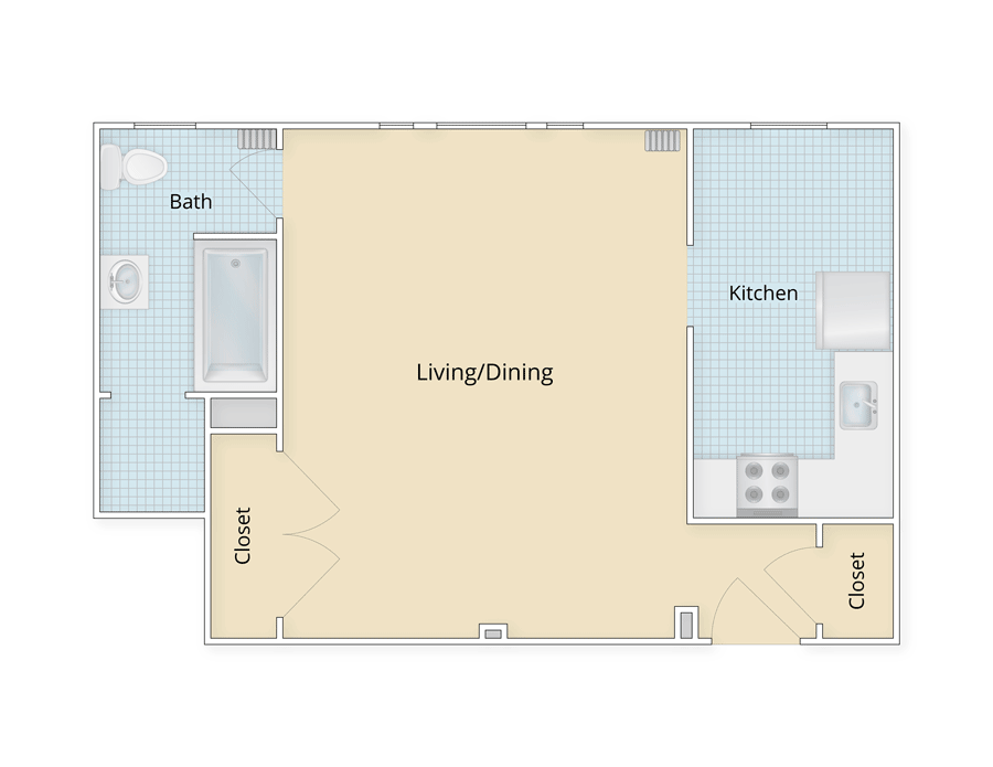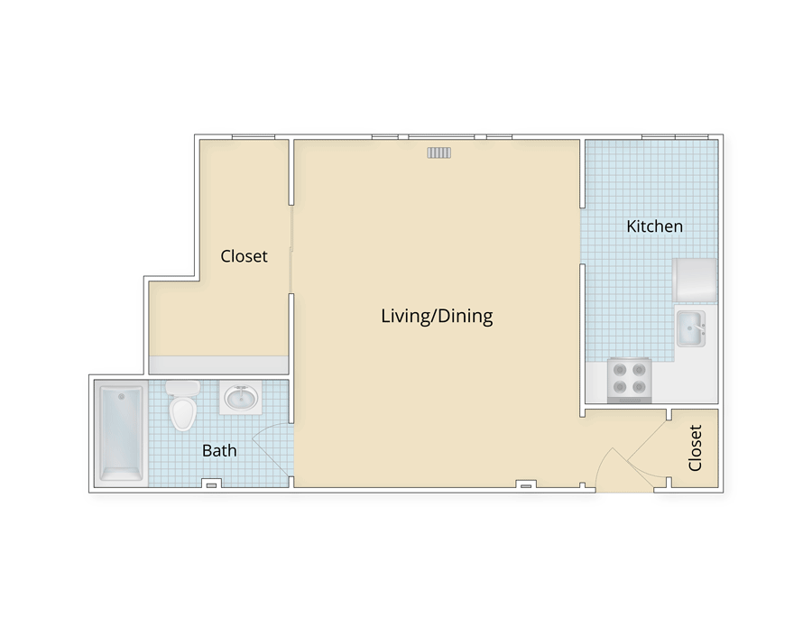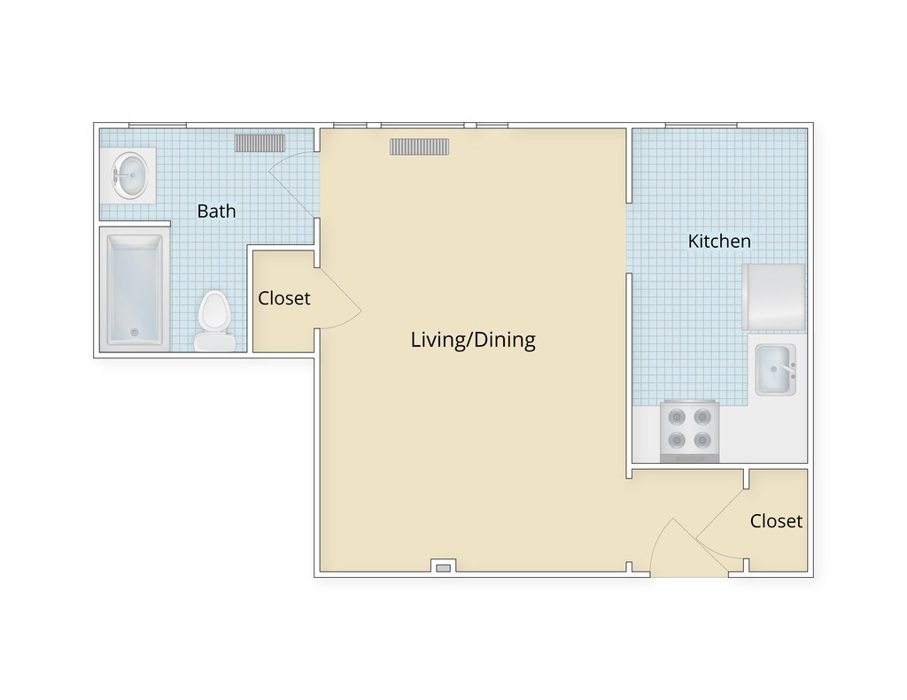 Large Studio - Floorplan 10 Apartment Unit: 104Apartment Model: Large Studio$1,972Studio, 1 Bath, 403 sq ftAvailable Now![]()