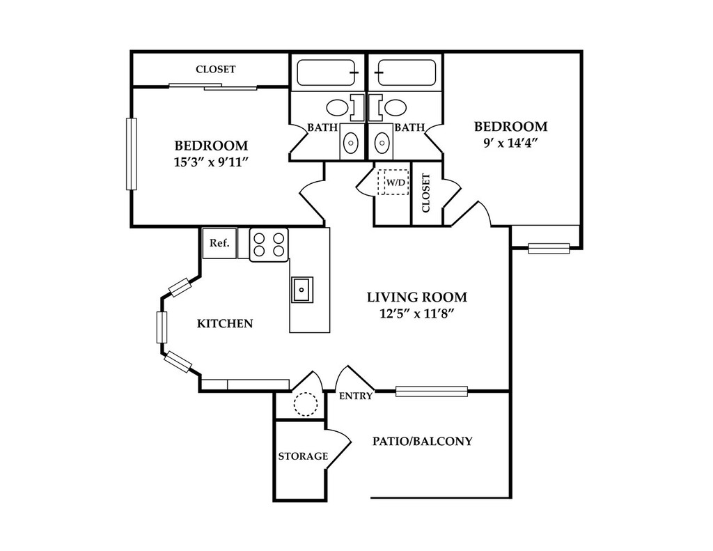 2 Beds, 2 Baths, 722 sq ftAvailable NowCheapest 2 BedroomThis is the cheapest 2 Bedroom at this PropertyModel Gallery