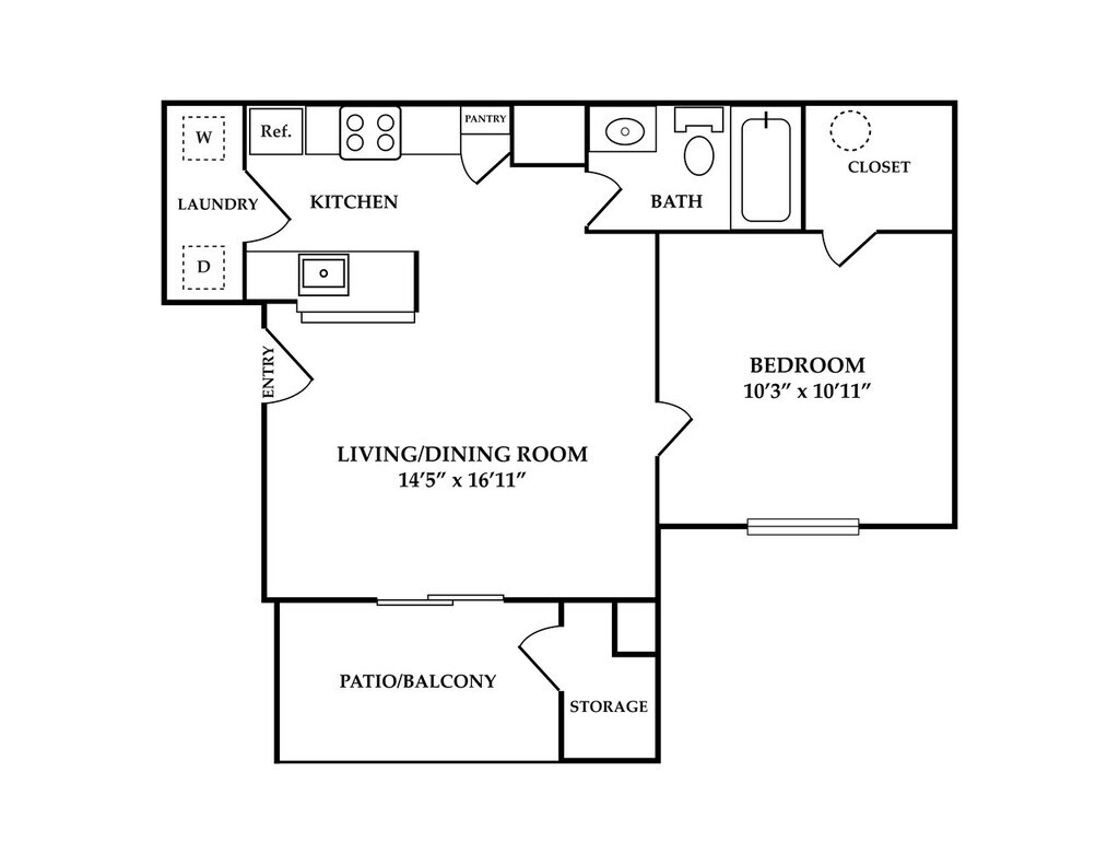 1 Bed, 1 Bath, 616 sq ftAvailable NowLargest 1 BedroomThis is the largest 1 Bedroom at this PropertyModel Gallery