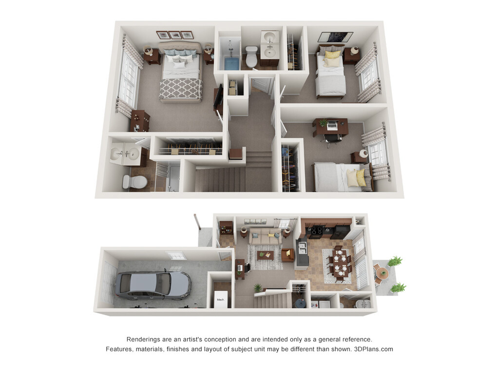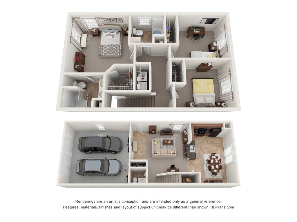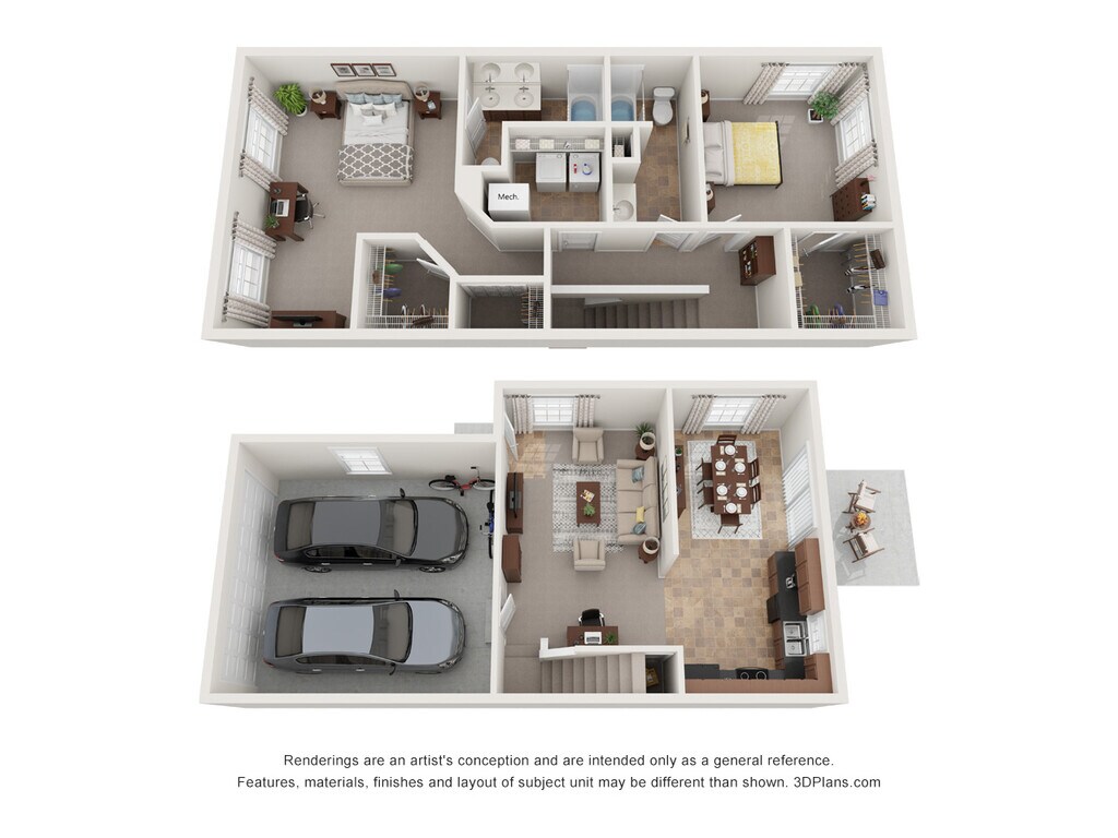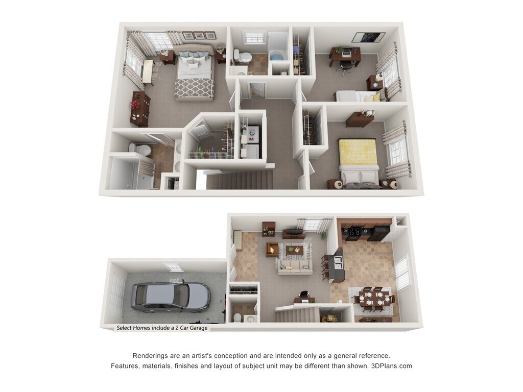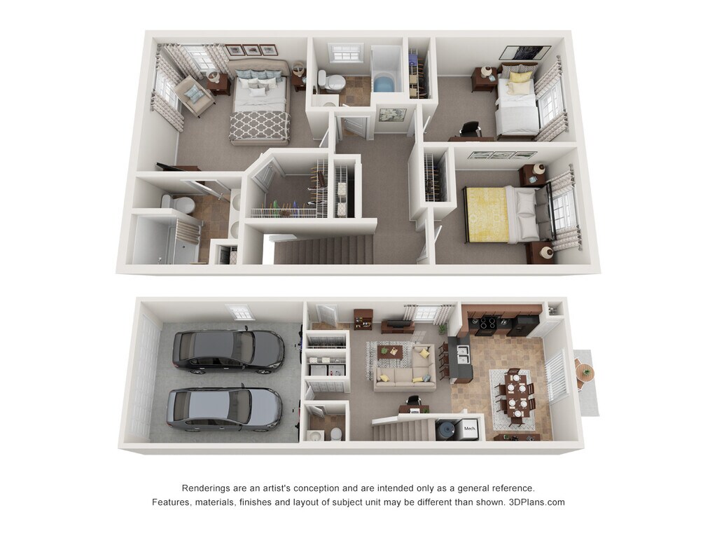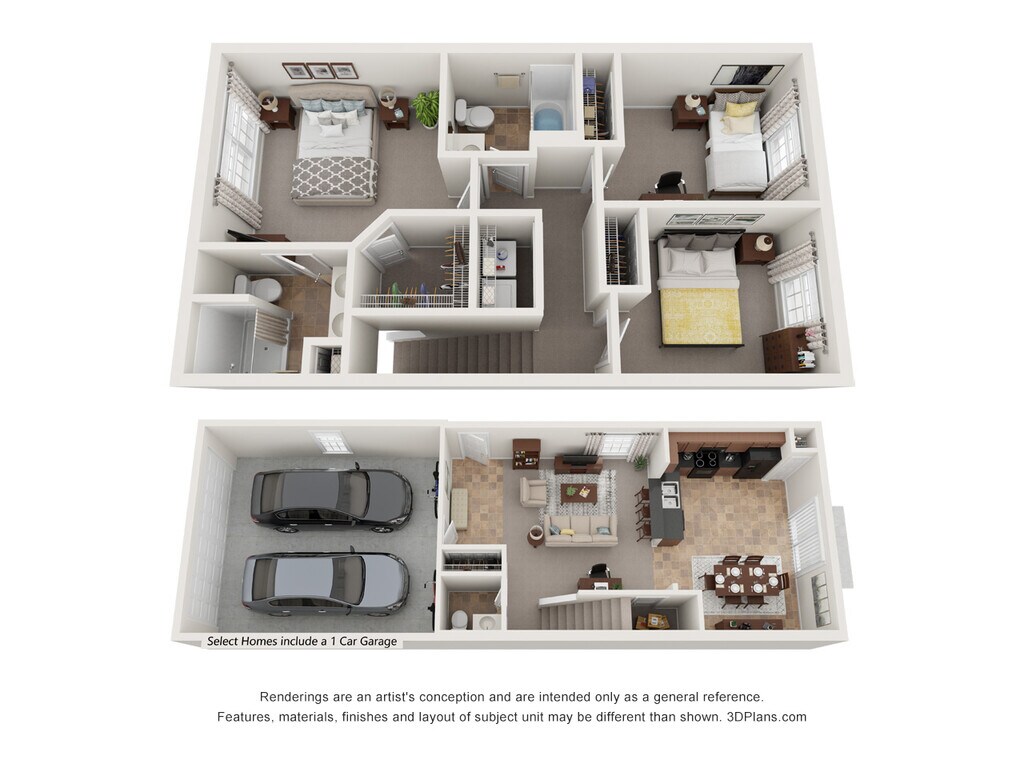 2 Beds, 2.5 Baths, 1264 sq ftModel Gallery