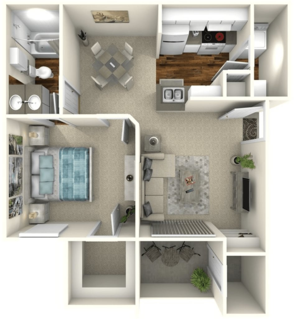 1 Bed, 1 Bath, 615 sq ftAvailable NowModel Gallery
