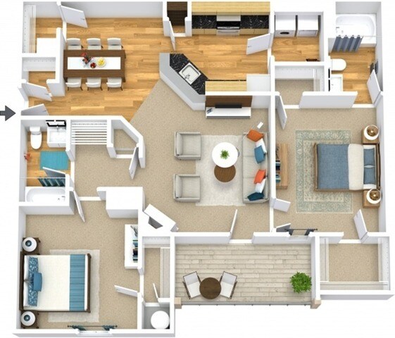 Apartment Model: B3-UpgradedFrom $1,7372 Bedroom, 1 Bath, 984 sq ftUnavailable![]()
