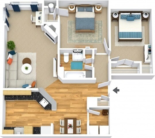 2 Beds, 1 Bath, 1051 sq ftModel Gallery