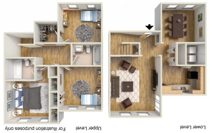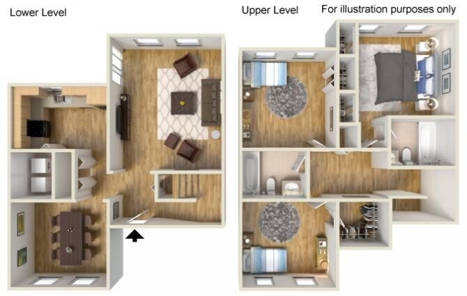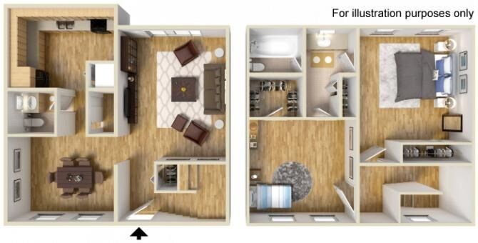 2 Beds, 1.5 Baths, 904-1027 sq ftModel Gallery