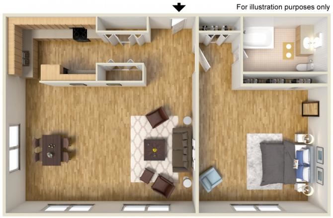 1 Bed, 1 Bath, 526 sq ftModel Gallery