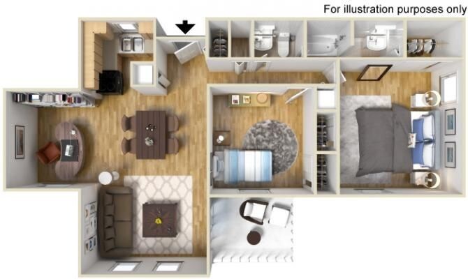 2 Beds, 2 Baths, 885 sq ftModel Gallery