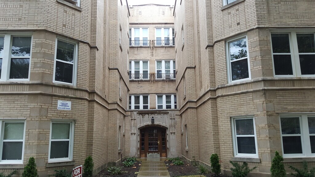 This well maintained property on a tree-lined street in North Park neighborhood features extremely large 1 bedroom units with huge living rooms with lots of windows. Separate dining room and kitchen. Bedroom fits a queen size bed. Lots of closet space. Public transportation at doorstep. 6 blocks to Kimball Brown line station. Close to North Park University, Northeastern University, and Swedish Covenant Hospital. Beautiful newly renovated apartment features hardwood floors throughout. Updated cabinets and stone countertops, stainless steel appliances including dishwasher & microwave. Modern bathroom with high end finishes. Laundry on-site. Great location close to Kimball brown line. Nearby park, grocery, shopping, nightlife and more! Rent includes heat, hot/cold water. Tenant paid cooking gas and electric. No smoking allowed. 1 year lease. $350 one-time non-refundable administrative fee per applicant.