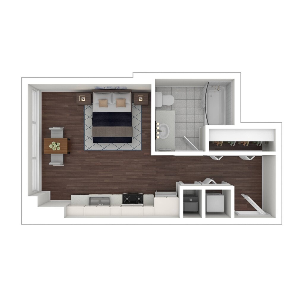 Studio e11.1 - Floorplan 1 Apartment Unit: 1409Apartment Model: Studio e11.1$2,176Studio, 1 Bath, 461 sq ftAvailable November 10, 2025![]()