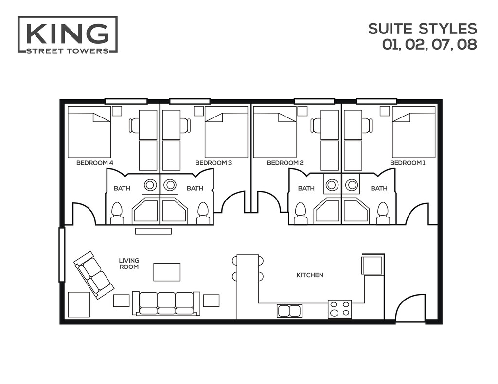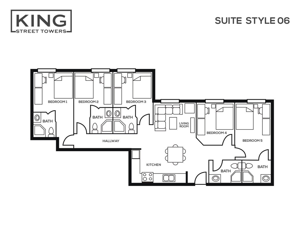 King Street Towers - Student Living offers 3 to 6 Bedroom apartments starting from $568 and having 844–1,415 sq ft. Here is the current pricing and availability: