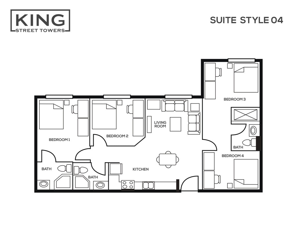 3 Bedroom to 6 Bedroom Apartments at King Street Towers - Student Living currently range from $568 to $1,239