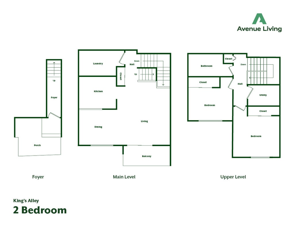 King's Alley offers 2 Bedroom apartments starting from $1,605 and having 978–1,100 sq ft. Here is the current pricing and availability: