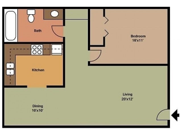 Embassy 1 Bedroom, 1 Bathroom - Floorplan 3 ![]()