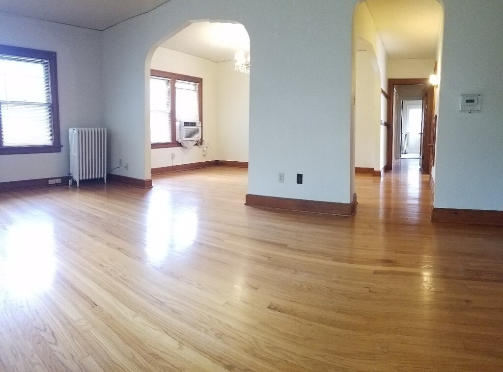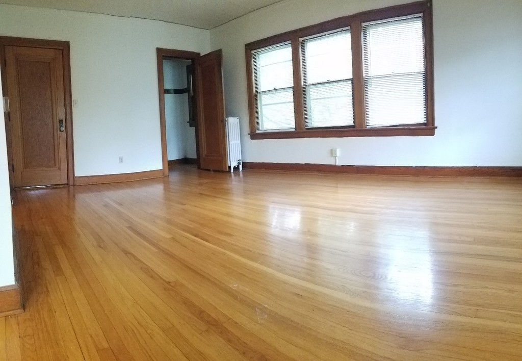 This roomy 3BR apartment has loads of charm, with hardwood floors, wood trim, and a great “classic character” kitchen. There is a huge living room and a full-sized dining room that can fit a table and six chairs. Bedroom 1 can accommodate a double or queen. Bedrooms 2 and 3 can accommodate a twin or double. Exceptional storage with a huge walk-in closet, a coat closet, and a linen closet. A detached one-car garage is included in the rent. For peace and privacy, there are only two apartments in the building and you have the entire floor to yourself. With approximately 1200 square feet, this apartment has the feel and space of a small house, except you do not need to deal with lawn-mowing, snow shoveling, or repair issues, all provided by the owner. The apartment is set amid a small complex of period brick buildings, with lawn areas and room for a garden if you desire. Coin laundry is on premises.