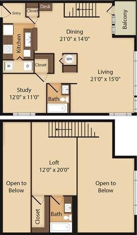 1 Bed, 2 Baths, 1490 sq ftLargest 1 BedroomThis is the largest 1 Bedroom at this PropertyModel Gallery