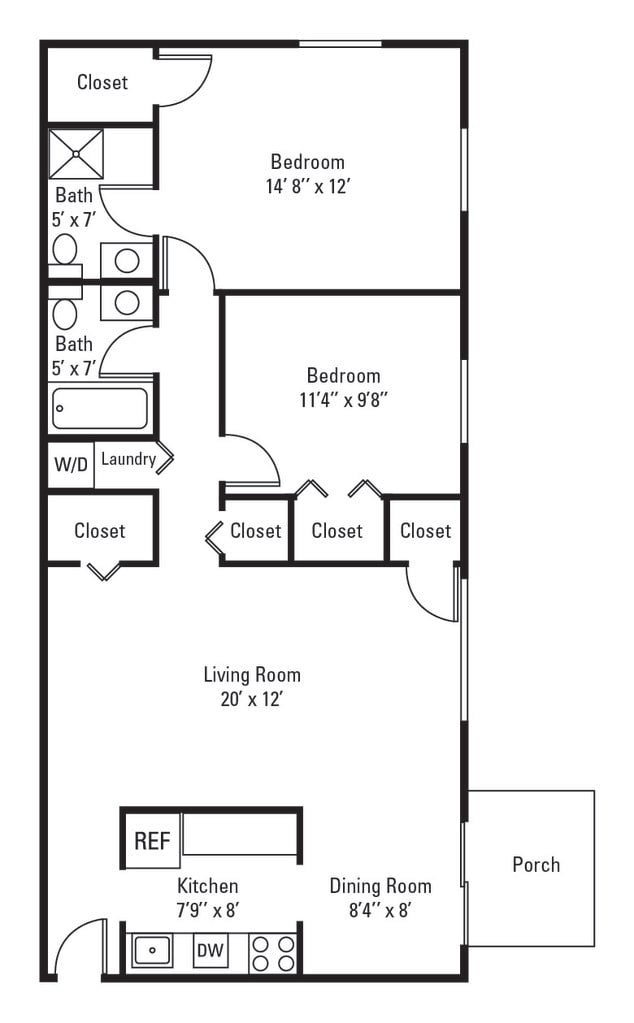 Two Bedroom 2 Bath- 950 sqft - Floorplan 1 ![]()