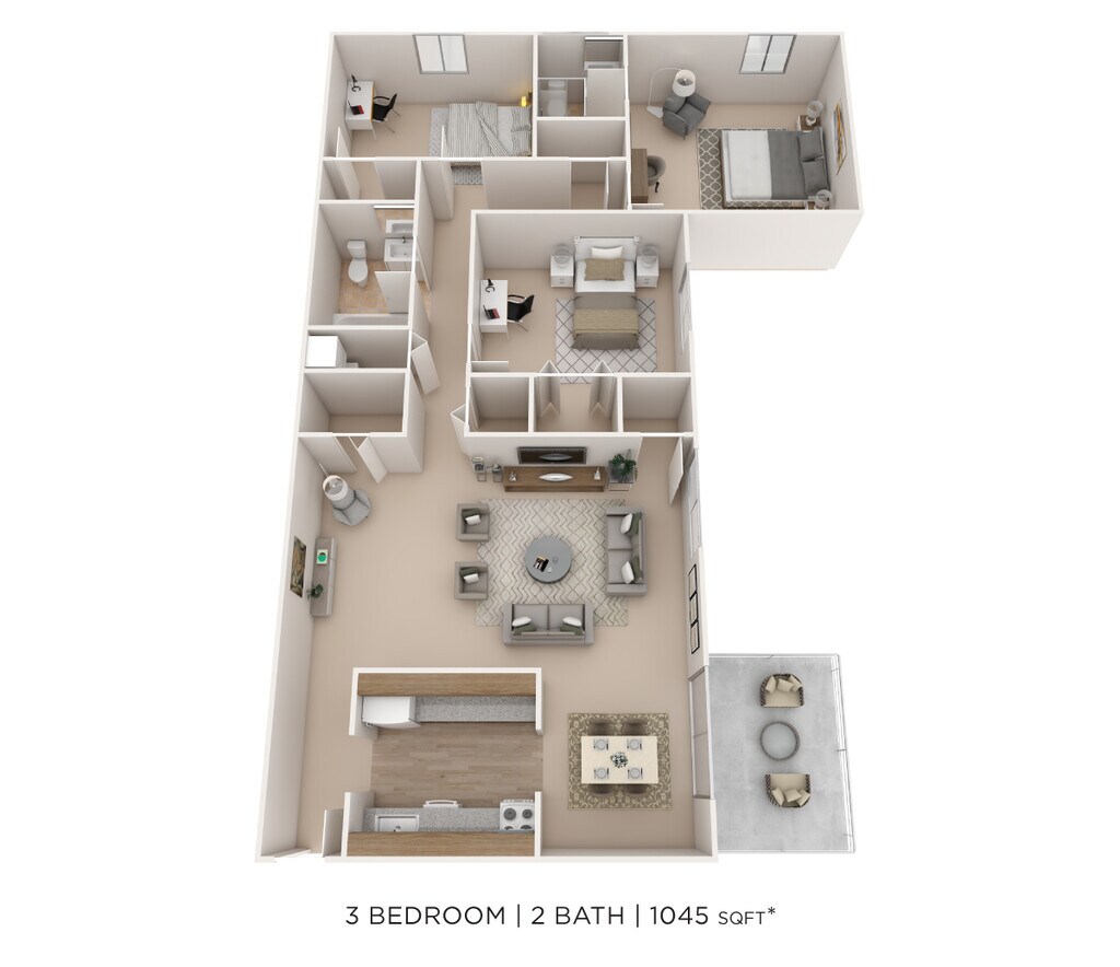 3 Beds, 2 Baths, 1045-1050 sq ftModel Gallery