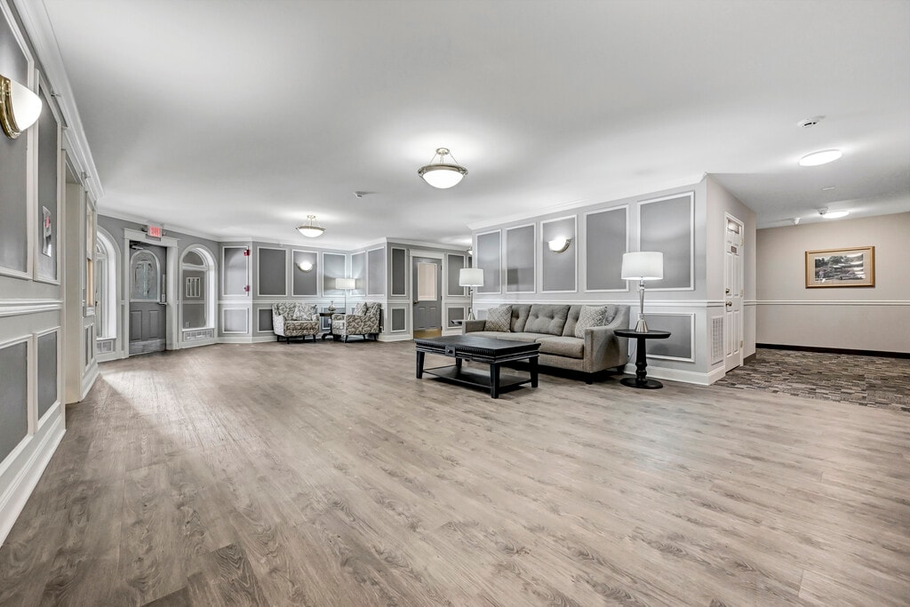 55+ Active Community - Open floor plan, large bathroom, carpet and vinyl flooring, Dishwasher, Large Pantry Closet. Each apt has a private balcony, 2 washers & dryers on every floor, Community Room, Exercise Room with some machine, Back Paved Patio with table & chairs along with a BBQ grill overlooking the pond. Easy to walk to Shop Rite and small stores. Parking Garages & Storage Units are available to Rent. Small dogs & cats are welcome for a fee.