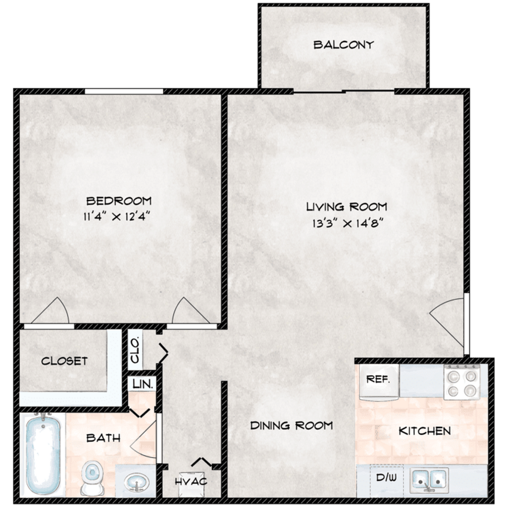 Apartment Model: 1X1From $9751 Bedroom, 1 Bath, 600 sq ftAvailable NowFloorplansPhotos![]()