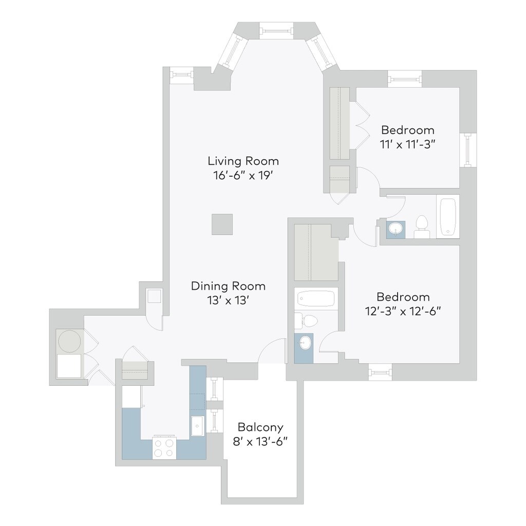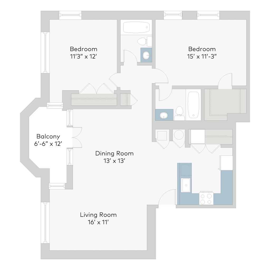 2C02LB - Floorplan 1 2 Beds, 2 baths