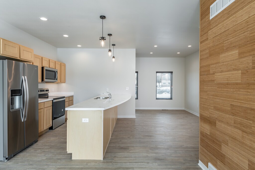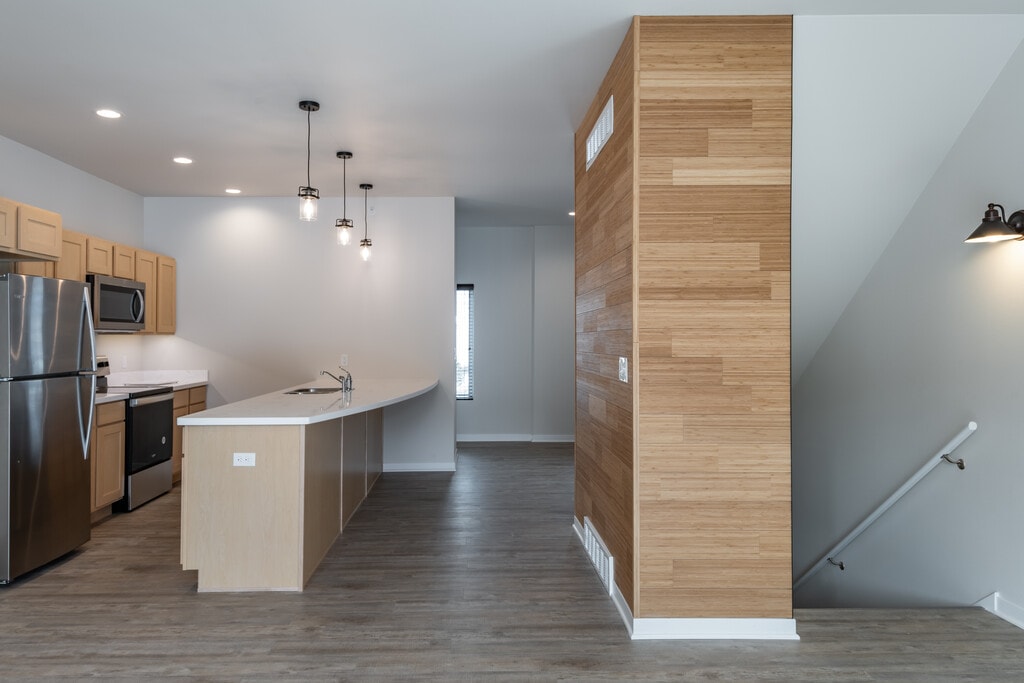 Townhouse luxury apartments with unique breathtaking architecture inside and out. Sleek and sophisticated, Kingsbury Village offers something new and unique to Sheboygan County. This distinctive and stylish townhome design provides an extremely comfortable, private and efficient living space. Adjacent to the walking/bicycle path and along the Sheboygan River, these pet-friendly apartments are only a couple blocks from the vibrant Downtown Sheboygan and Lake Michigan beaches. With 1,395 square feet of livable space – there’s nothing else like it in the county.