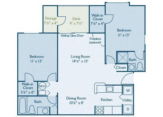 2 Beds, 1 Bath, 956 sq ftAvailable NowModel Gallery