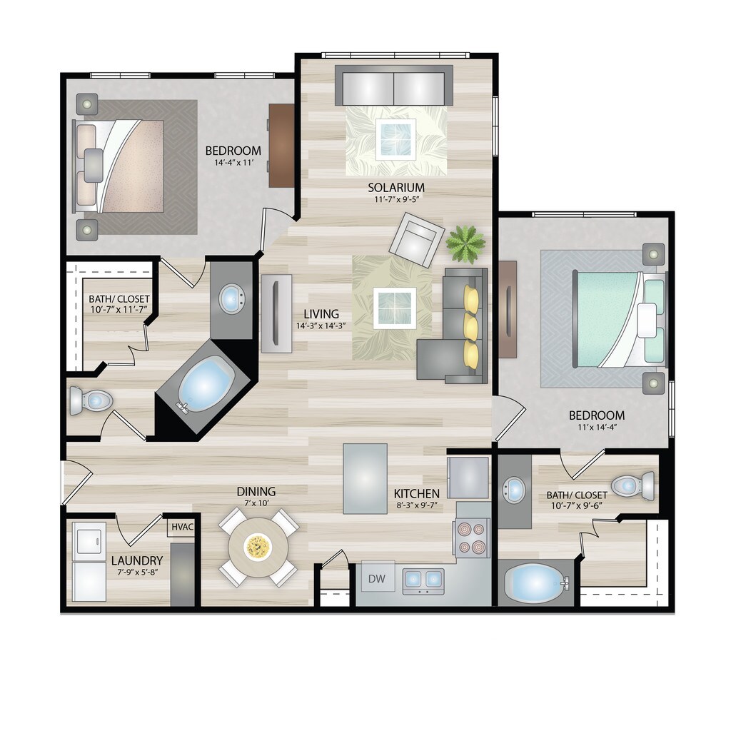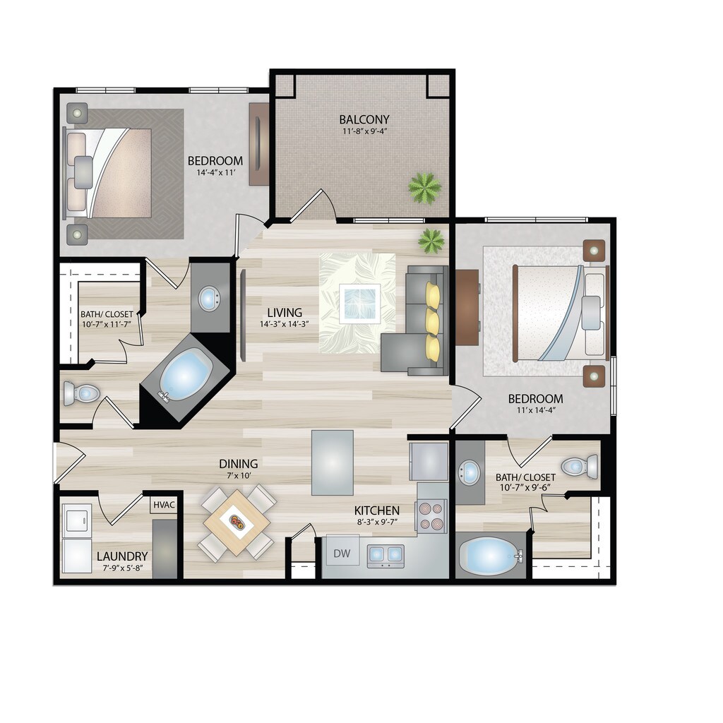1 Bed, 1 Bath, 921 sq ftAvailable NowLargest 1 BedroomThis is the largest 1 Bedroom at this PropertyModel Gallery