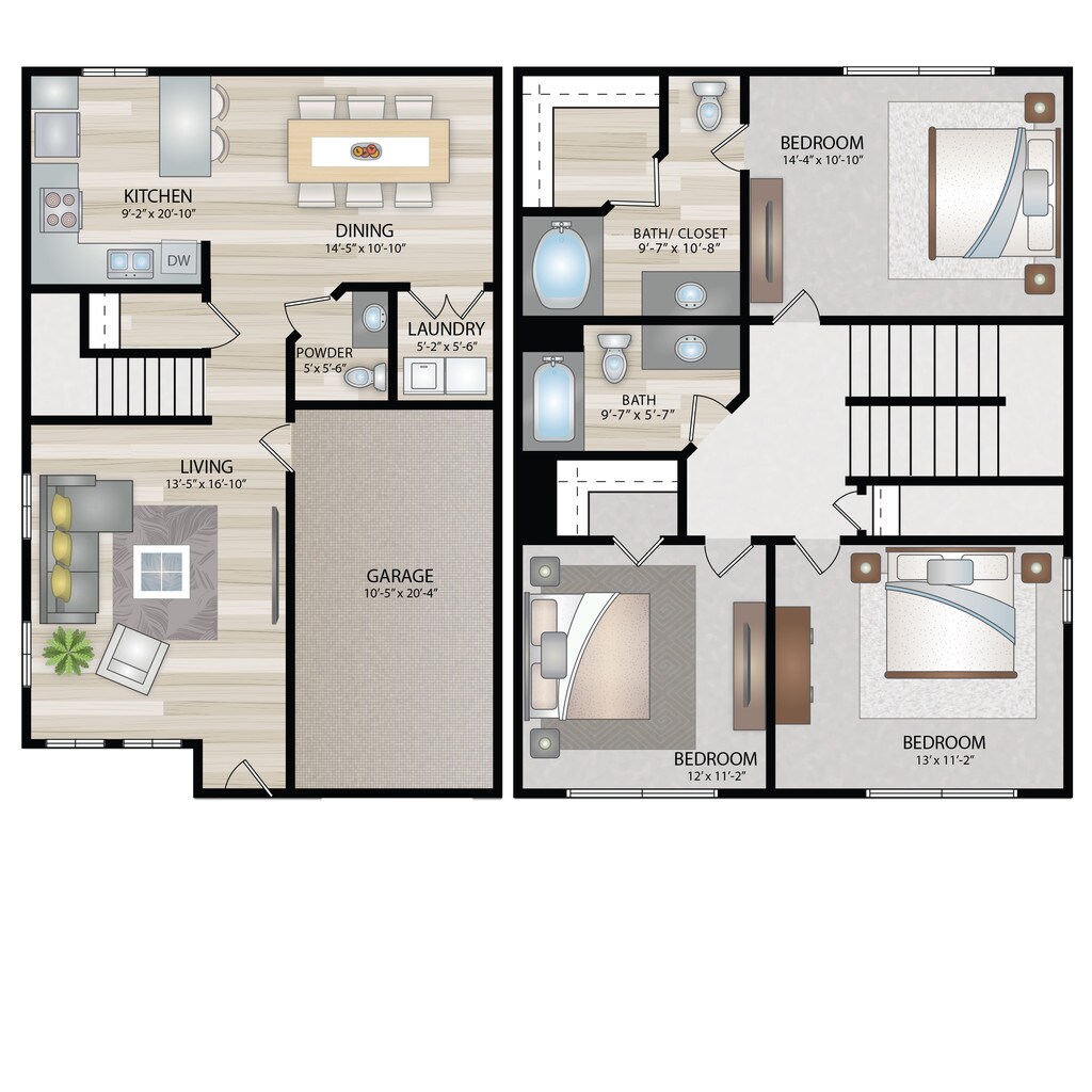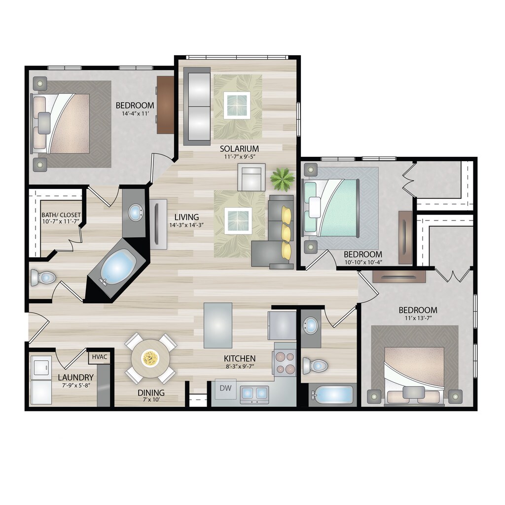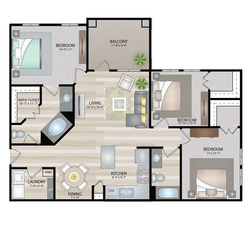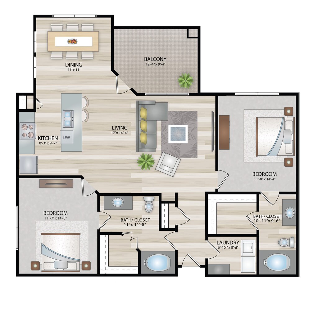Apartment Model: A3From $1,5591 Bedroom, 1 Bath, 921 sq ftAvailable Now![]()