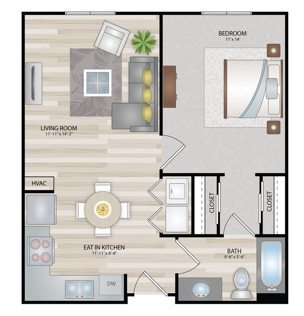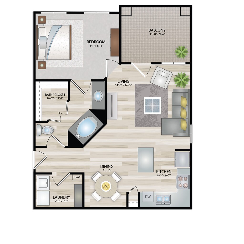 Apartment Model: A1From $1,3991 Bedroom, 1 Bath, 621 sq ftAvailable Now![]()