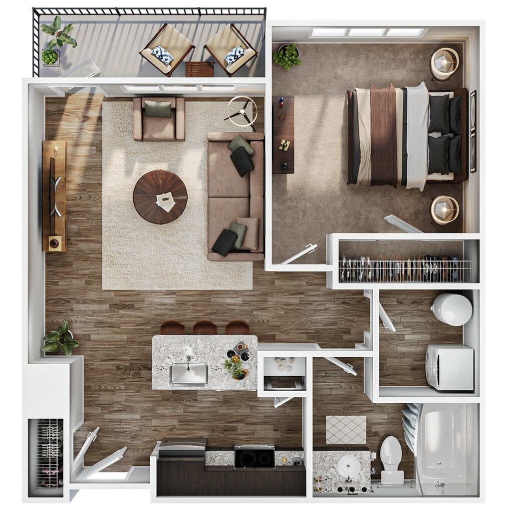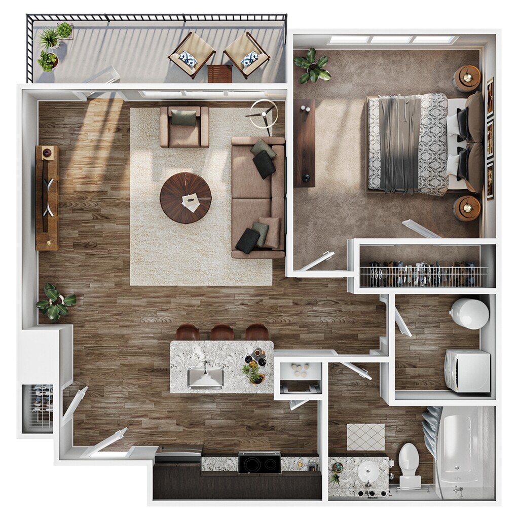 1 Bed, 1 Bath, 625 sq ftModel Gallery