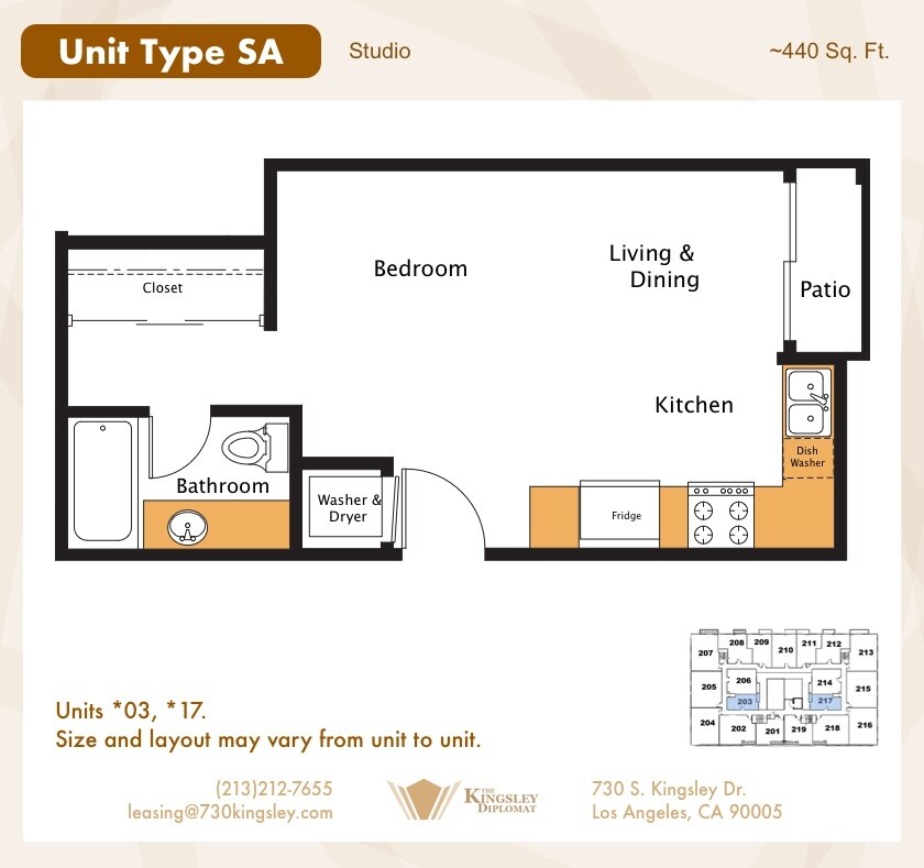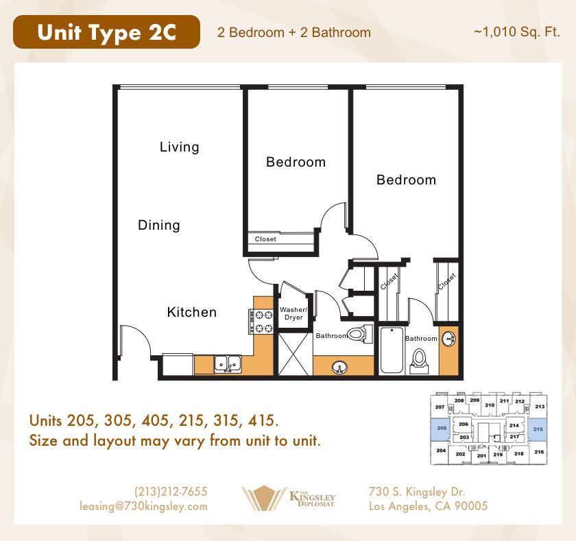 Kingsley Diplomat Apartments offers Studio to 2 Bedroom apartments starting from $1,908 and having 440–1,000 sq ft. Here is the current pricing and availability: