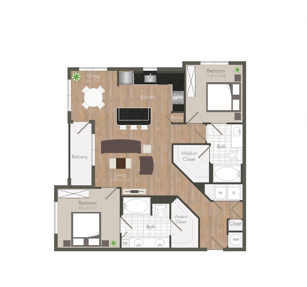 2 Beds, 2 Baths, 1088 sq ftAvailable NowModel Gallery
