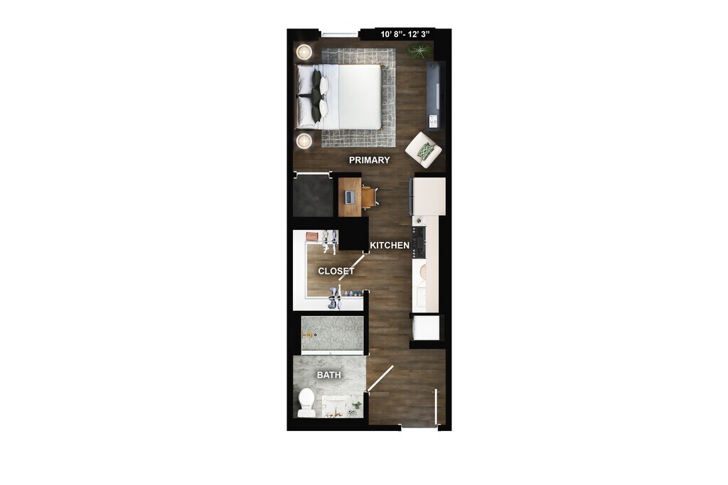 Studio, 1 Bath, 408 sq ftAvailable NowModel Gallery