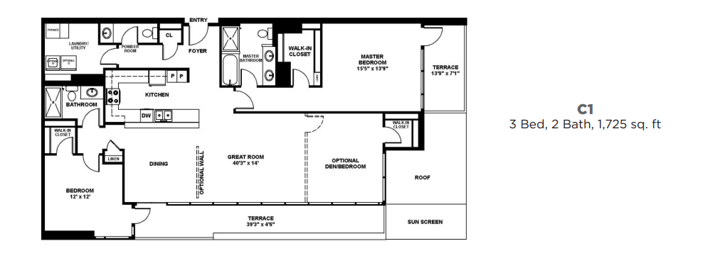 1 Bed, 1 Bath, 821 sq ftModel Gallery